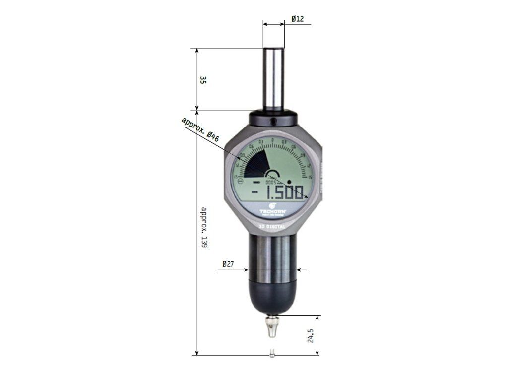 001D30012 3D taster DIGITAL, stopka Ø12 mm, TSCHORN