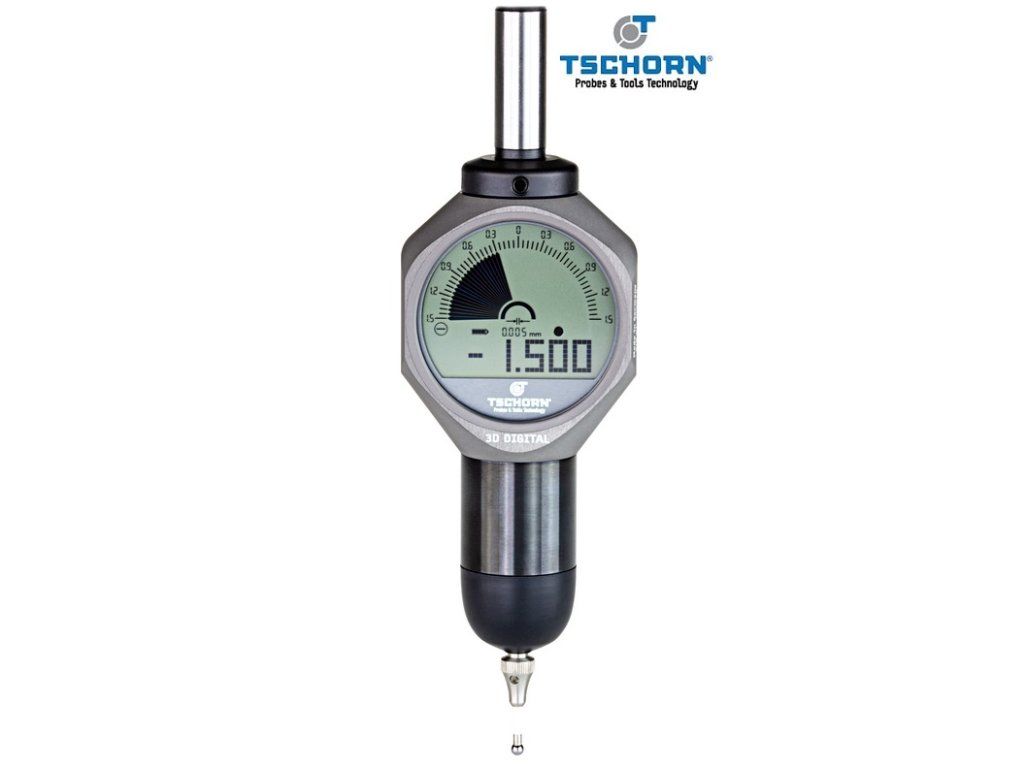 Zcela nová a revoluční je 3D dotyková sonda TSCHORN, 3D Digital. Spojuje to nejlepší z obou světů, protože 3D digitální displej lze odečítat digitálně i analogicky: digitální displej s čísly umožňuje uživateli odečítat hodnotu s přesností 0,005 mm. Sledování rychle se měnícího digitálního displeje očima je prakticky nemožné. Doplňkový analogový displej však uživateli poskytuje jistotu.