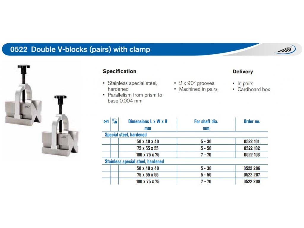 0522 Měřící a upínací prizmata s třmenem v páru, Helios-Preisser