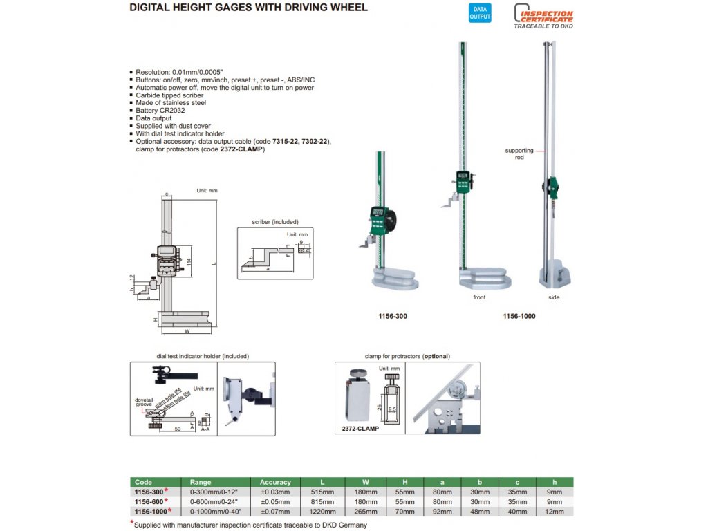 1156 Digitální výškoměry - nádrhy, rozsahy 300, 600 a 1000 mm, INSIZE