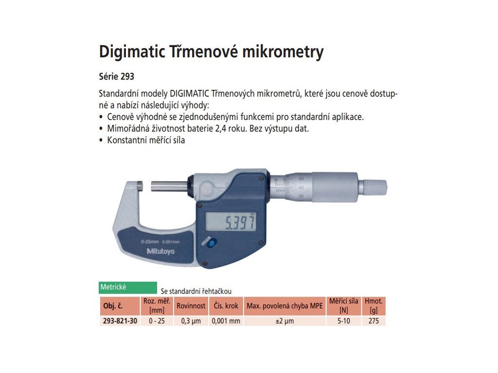 293-821-30 Digitální třmenový mikrometr 0-25/0,001 mm, DIGIMATIC, Mitutoyo