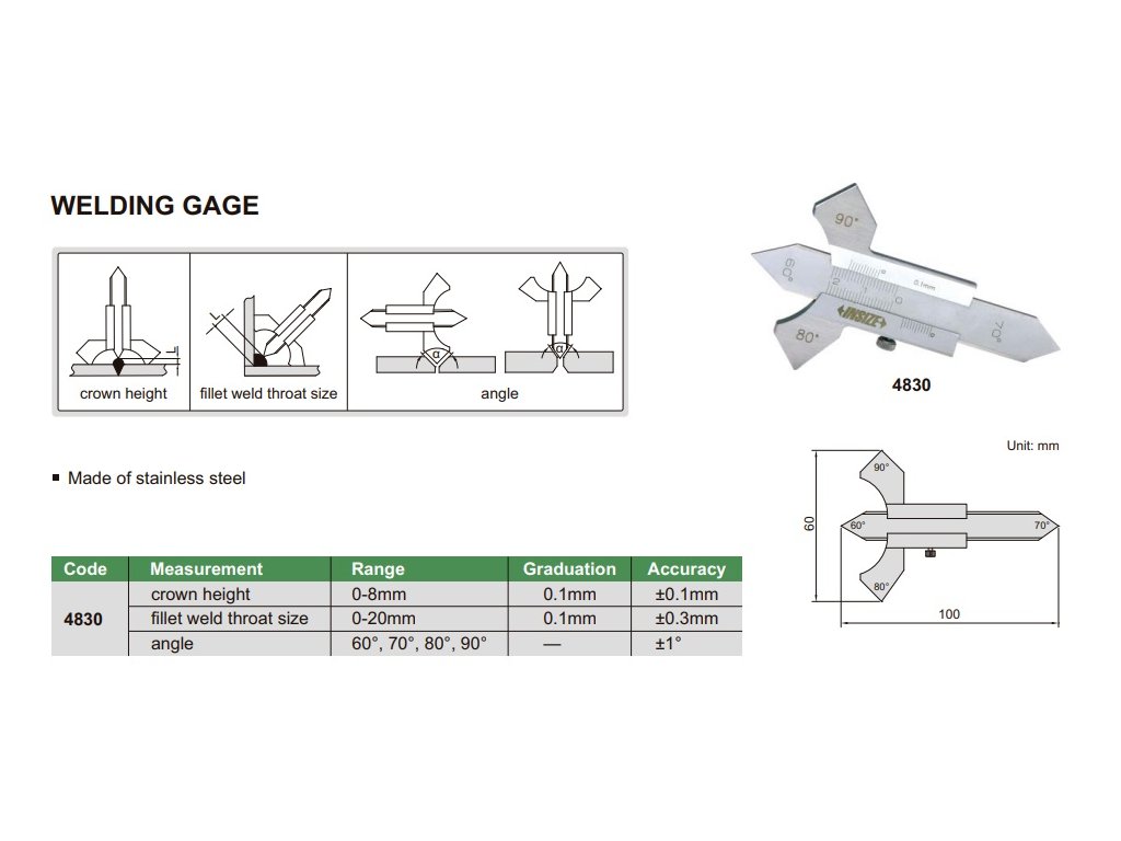 4830 INSIZE Svarová měrka - vlaštovka 0-20 mm/60°, 70°, 80°,90°