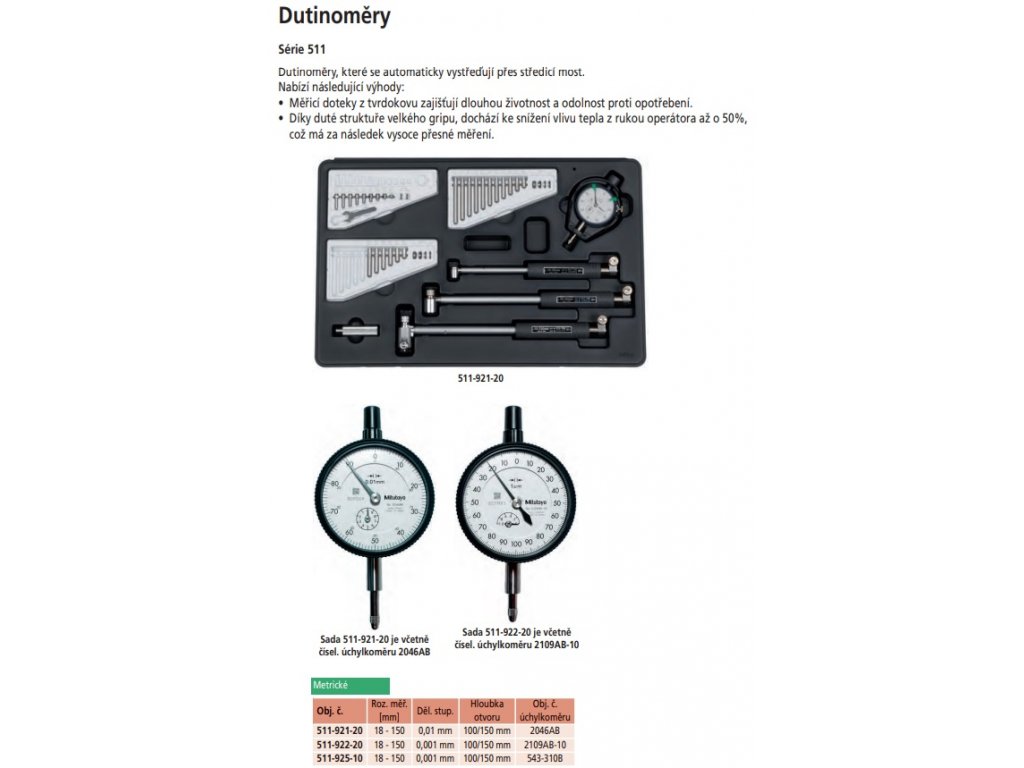 511-922-20 Sada dvoudotekových dutinoměrů - subit 18-150/0,001 mm, Mitutoyo