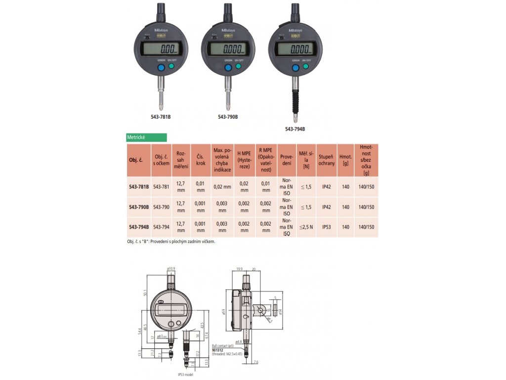 543-781B-10 Digitální úchylkoměr 0-12,7/0,01 mm, Mitutoyo