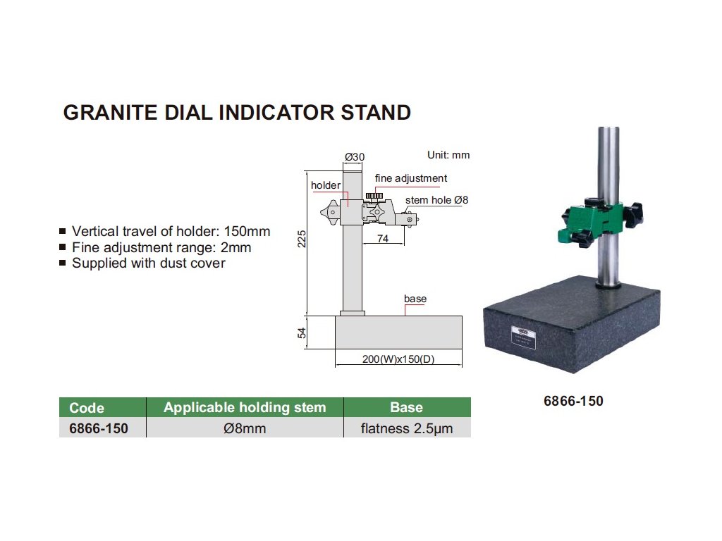6866-150 INSIZE Přesný měřící stojánek 150 mm / 200x150 mm, jemné stavění, granitová základna