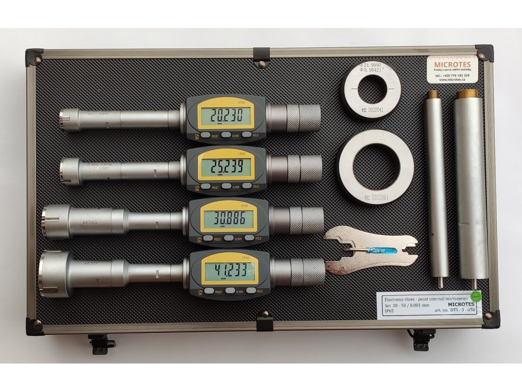 - Sada obsahuje 4 digitální dutinoměry s rozsahem 50-63; 62-75; 75-88; 87-100 mm