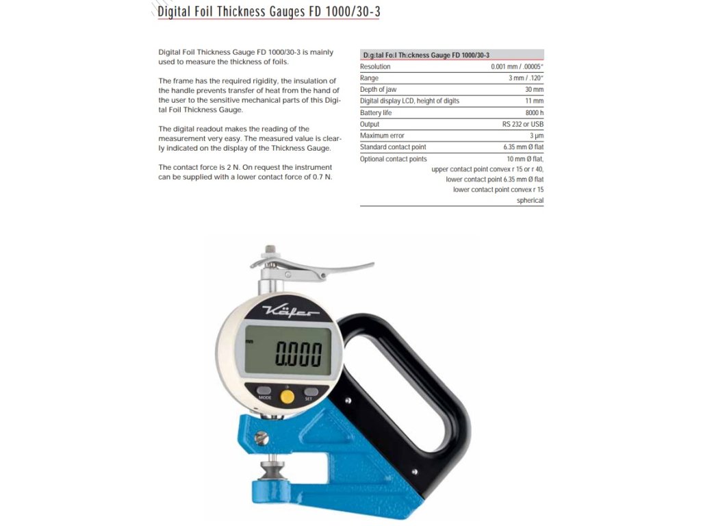 FD 1000/30-3 Digitální tloušťkoměr 0-3/0,001 mm, na fólie, Käfer