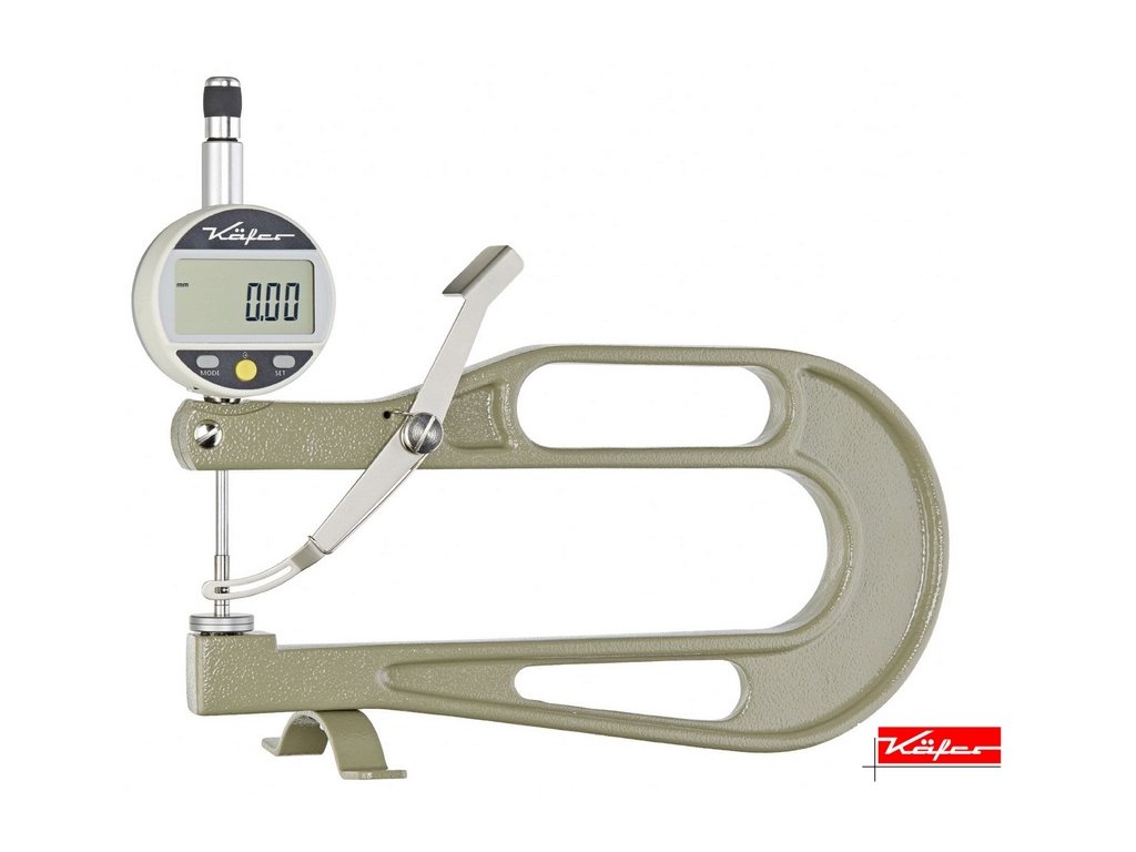 JD 200/25 Digitální tloušťkoměr 0-25/0,01 mm, hl. třmenu 200 mm, doteky dle výběru, Käfer