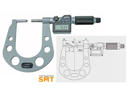 Měřící rozsah 75 - 100 mm Dílek stupnice 0,001 mm Stoupání vřetene 2 mm! - 4x rychlejší posuv...