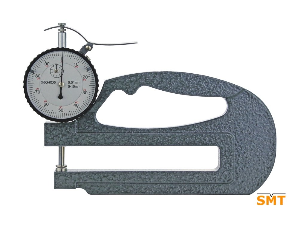 Tloušťkoměr 0-10/0,01 mm, zaoblený dotek, hluboký třmen 120 mm
